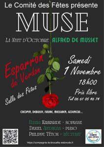 LE COMITE DES FÊTES D’ESPARRON-DE-VERDON PRÉSENTE “MUSE” LE SAMEDI 1ER NOVEMBRE 2025 A 18H00 A LA SALLE POLYVALENTE