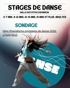 SONDAGE POUR DES STAGES DE DANSE A LA SALLE DES FÊTES D’ESPARRON-DE-VERDON A PARTIR DE JANVIER 2026