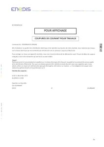 COUPURES DE COURANT POUR TRAVAUX LE LUNDI 15 DÉCEMBRE 2025