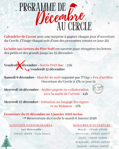 PROGRAMME AU CERCLE POUR LE MOIS DE DÉCEMBRE 2025