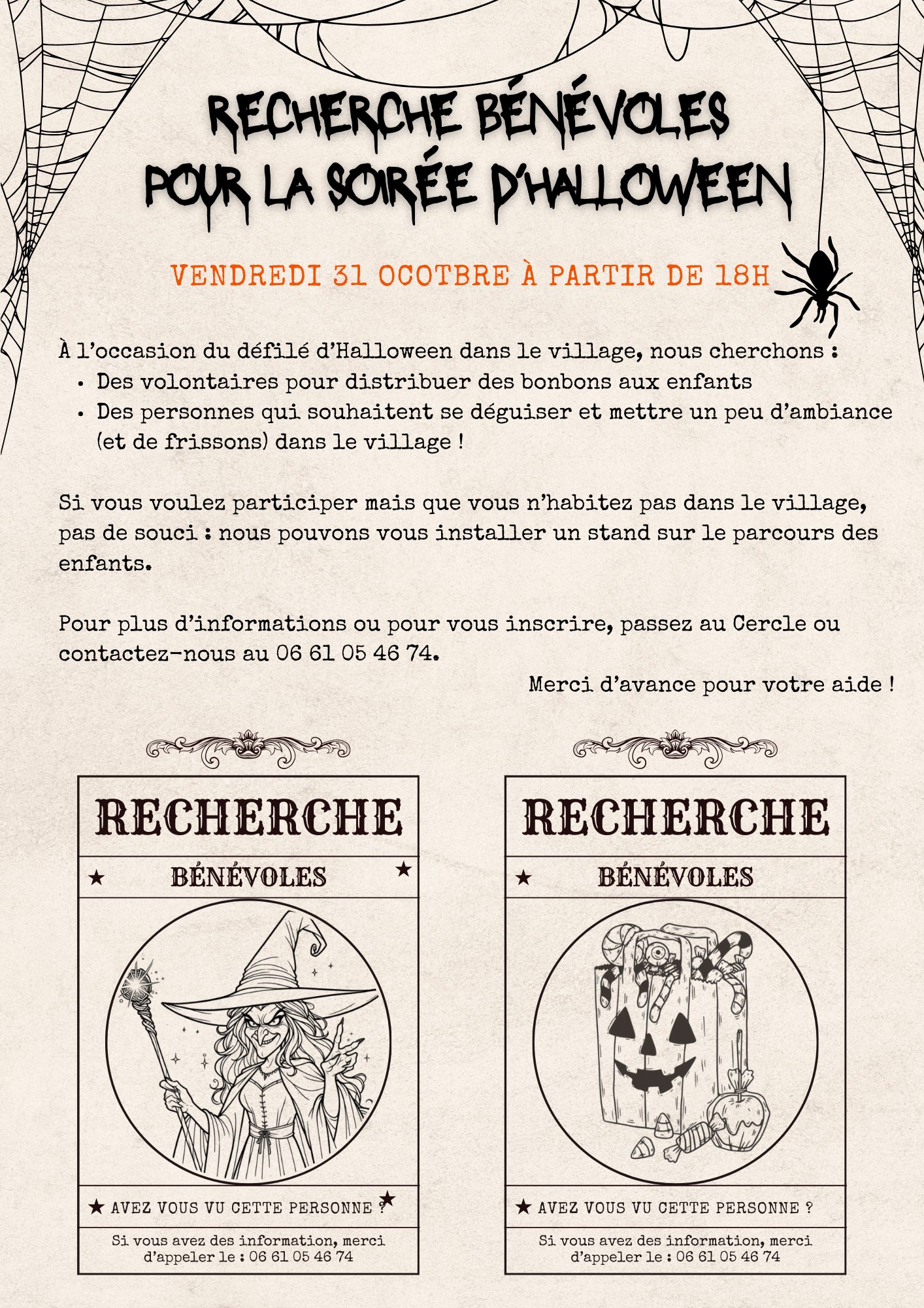 RECHERCHE BENEVOLES POUR LA SOIRÉE D’HALLOWEEN DU VENDREDI 31 OCTOBRE 2025 A PARTIR DE 18H00