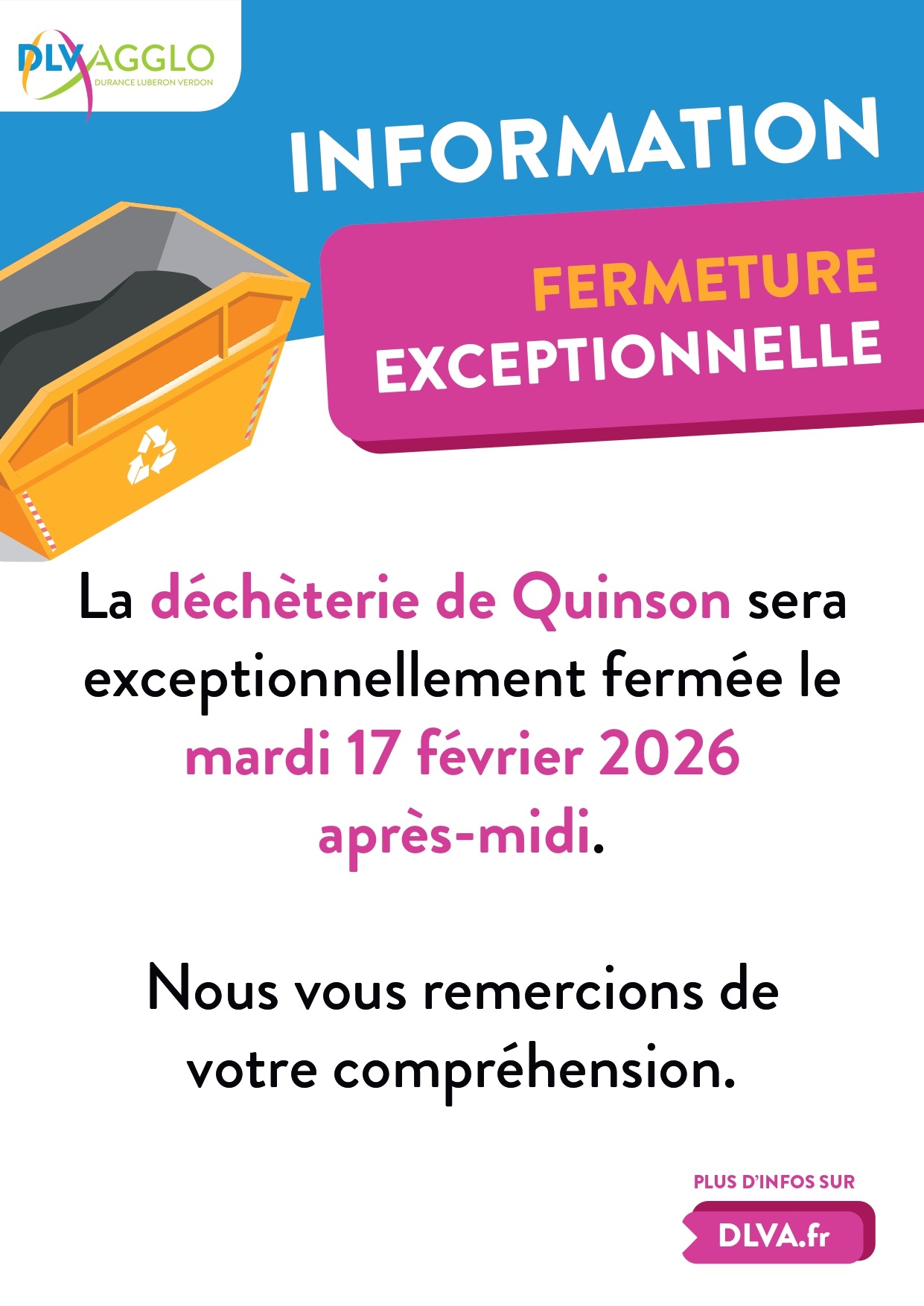 FERMETURE EXCEPTIONNELLE DE LA DECHETERIE DE QUINSON LE MARDI 17 FÉVRIER APRÈS-MIDI