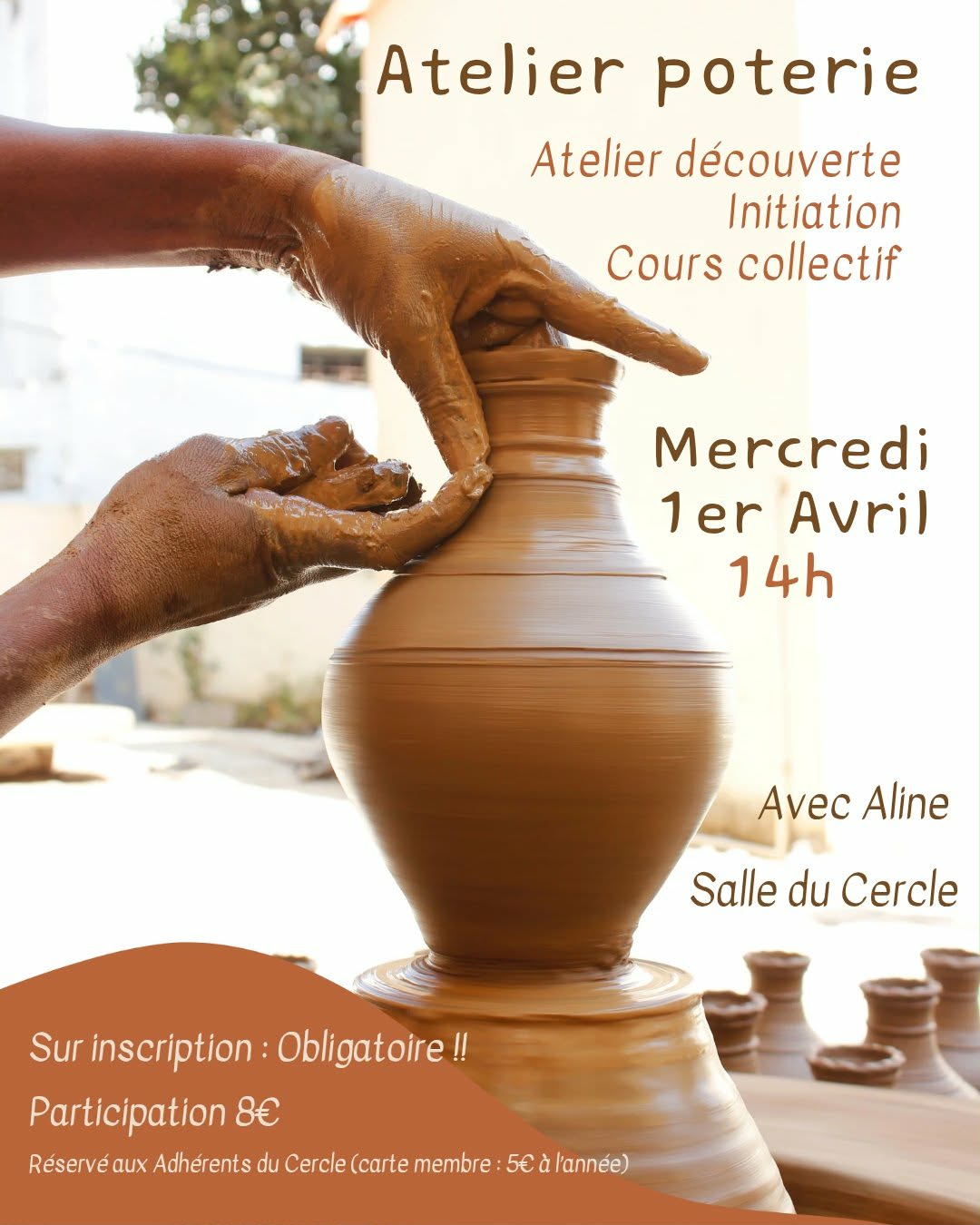 ATELIER POTERIE LE MERCREDI 1ER AVRIL 2026 A 14H00 A LA SALLE DU CERCLE