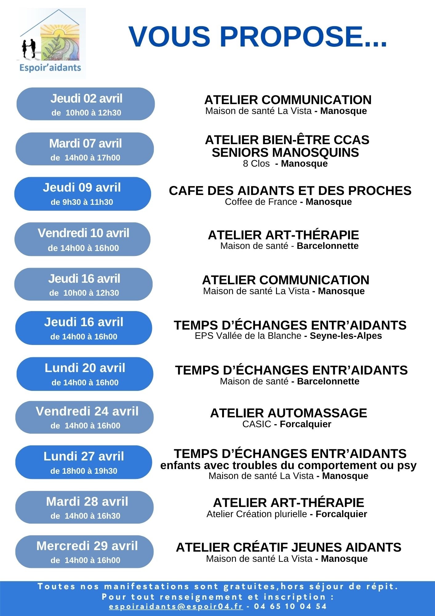 PROGRAMME AVRIL 2026 ESPOIR’AIDANTS