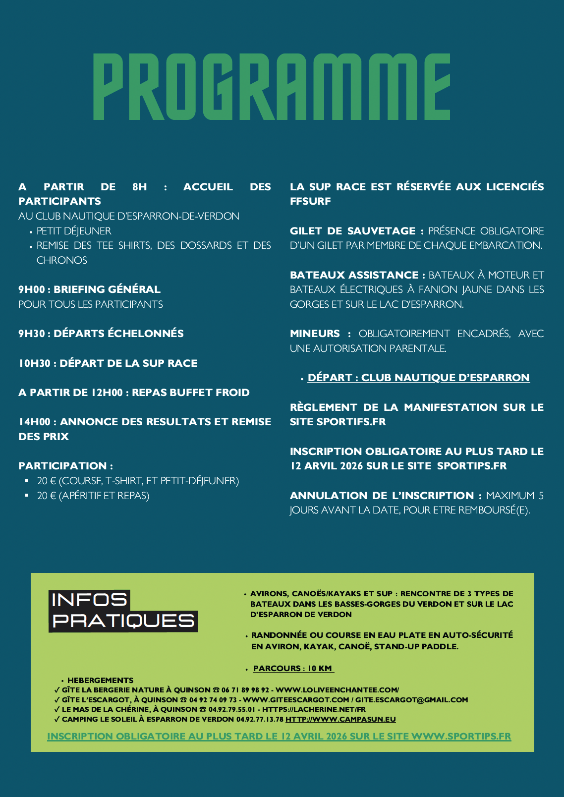 – Lors de cet évènement, aura lieu un Open Territorial SUP RACE comptant pour les championnat de France en collaboration avec la ligue SUD PACA de Surf (pour le Stand Up Paddle)