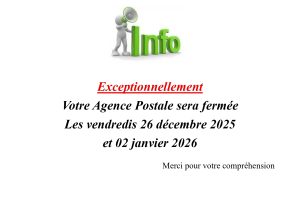 FERMETURE EXCEPTIONNELLE DE LA POSTE LES VENDREDIS 26 DÉCEMBRE 2025 ET 2 JANVIER 2026