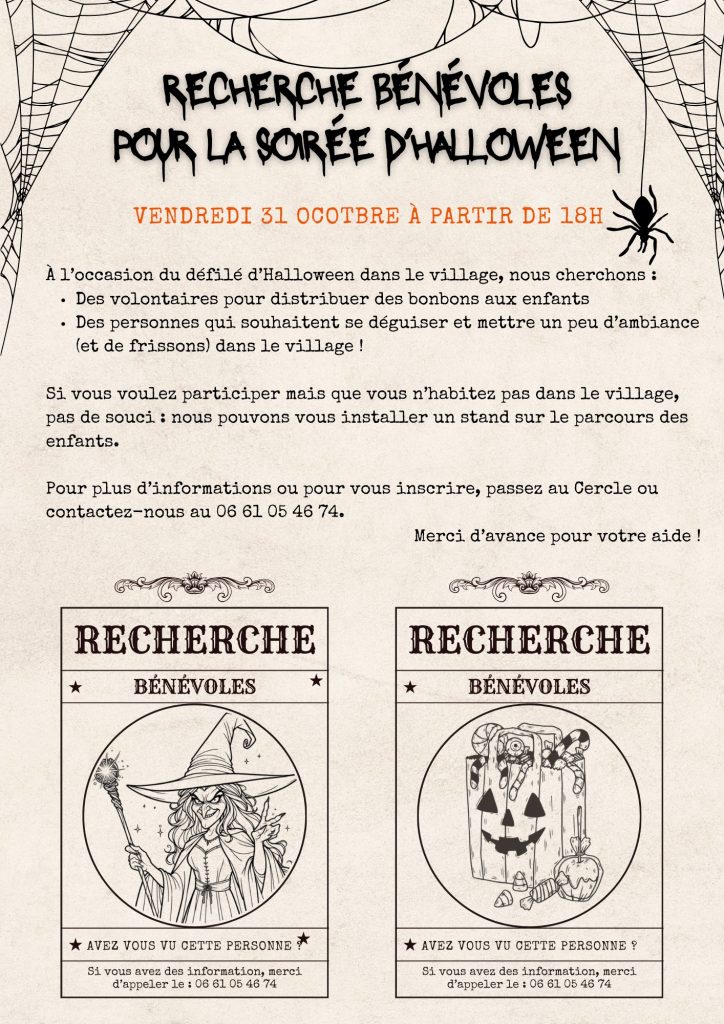 RECHERCHE BENEVOLES POUR LA SOIRÉE D’HALLOWEEN DU VENDREDI 31 OCTOBRE 2025 A…