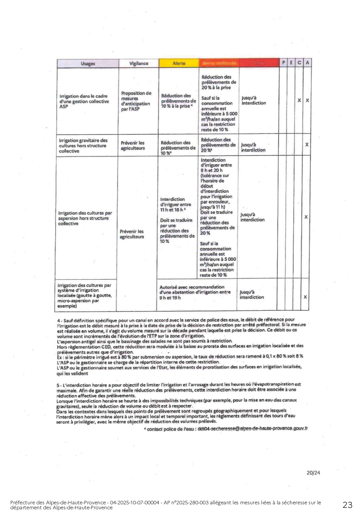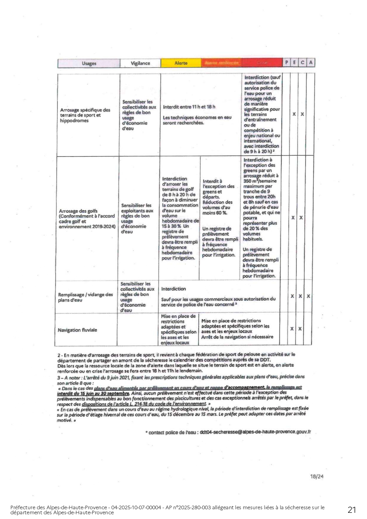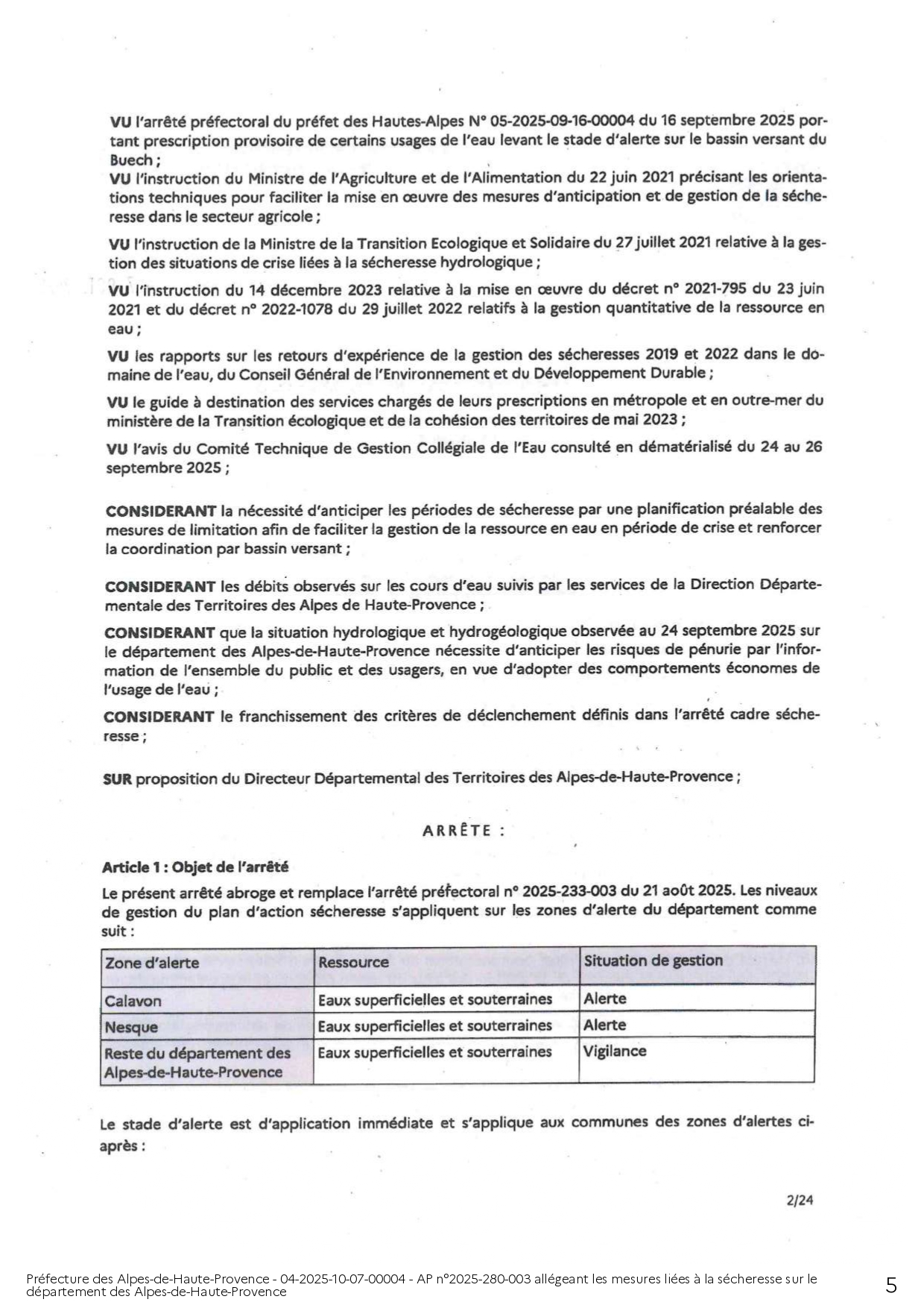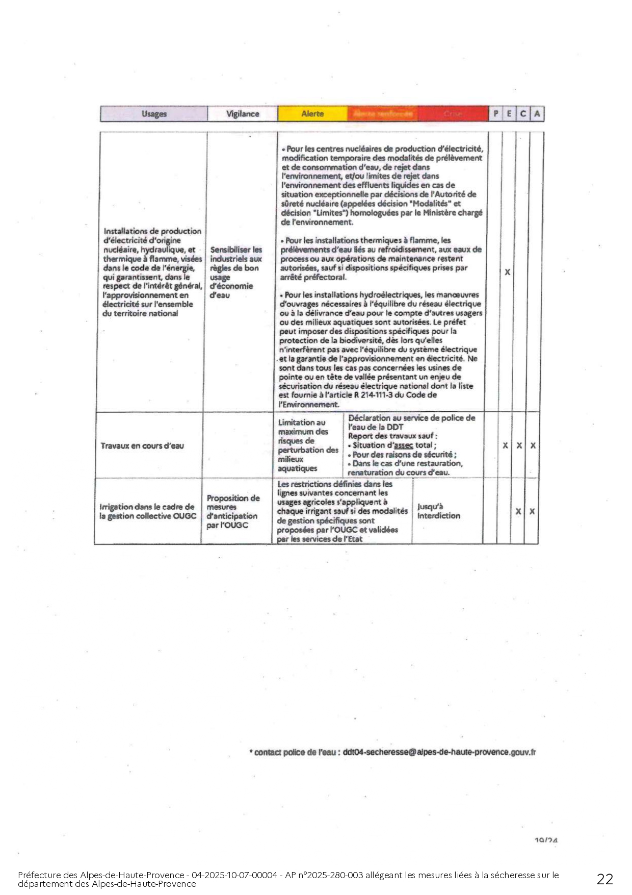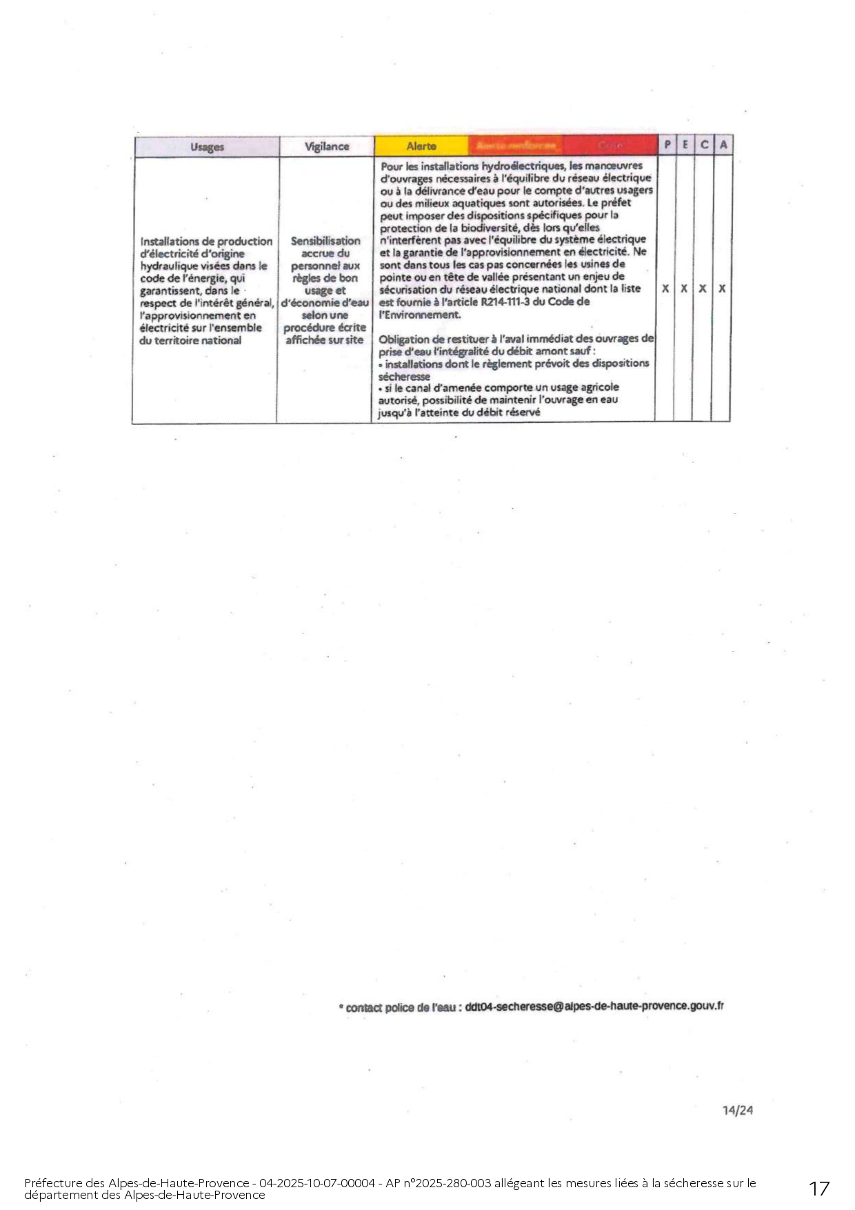 ARRÊTÉ PRÉFECTORAL ALLÉGEANT LES MESURES LIÉES A LA SÉCHERESSE SUR LE DEPARTEMENT DES ALPES DE HAUTE-PROVENCE