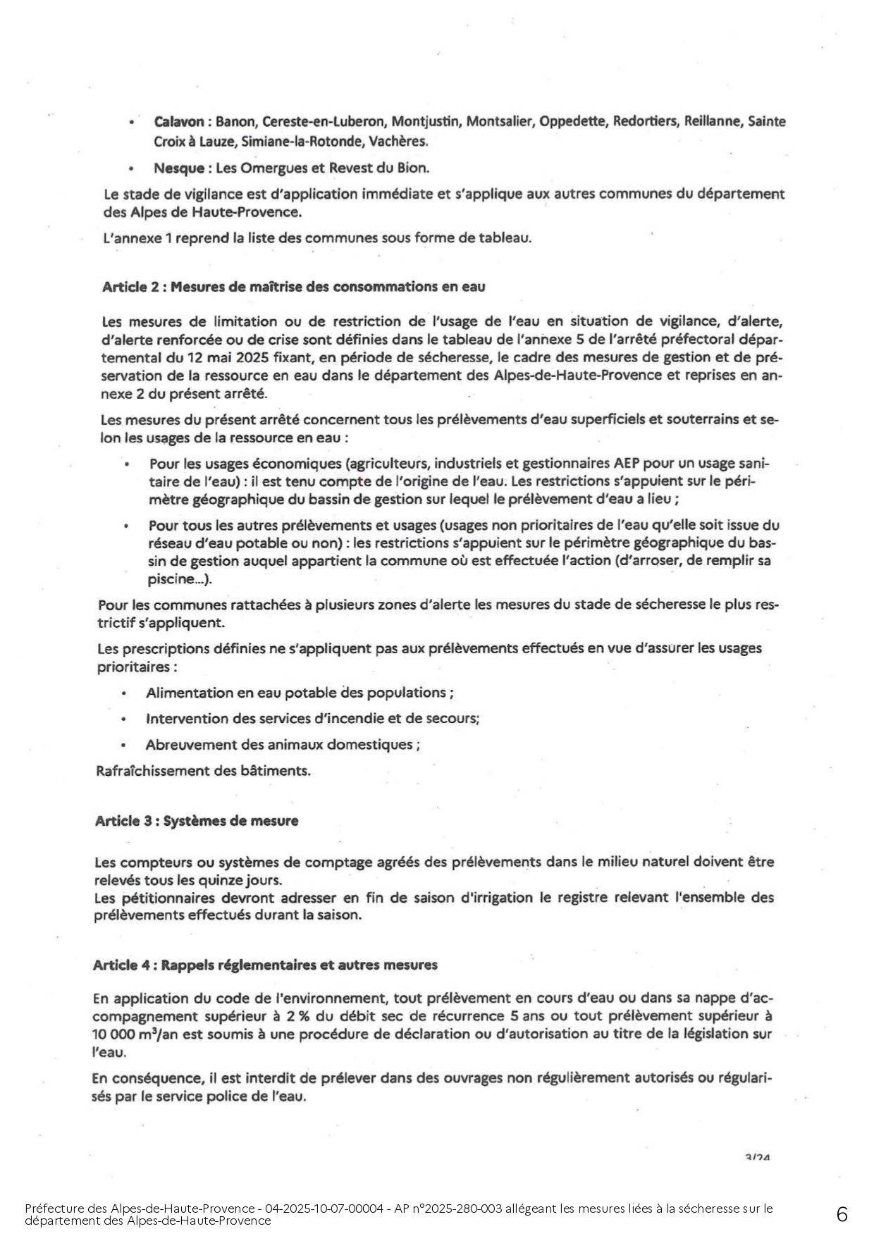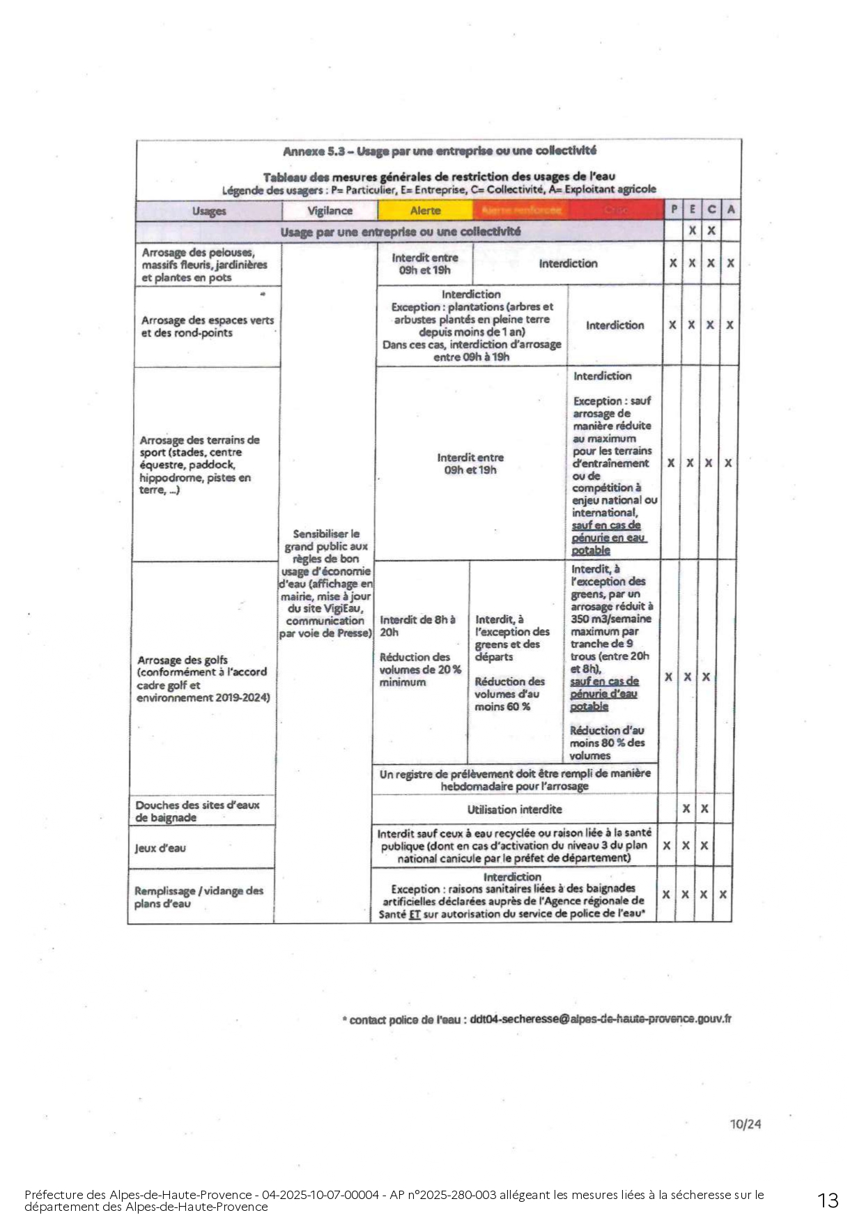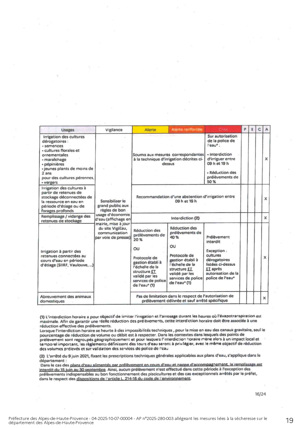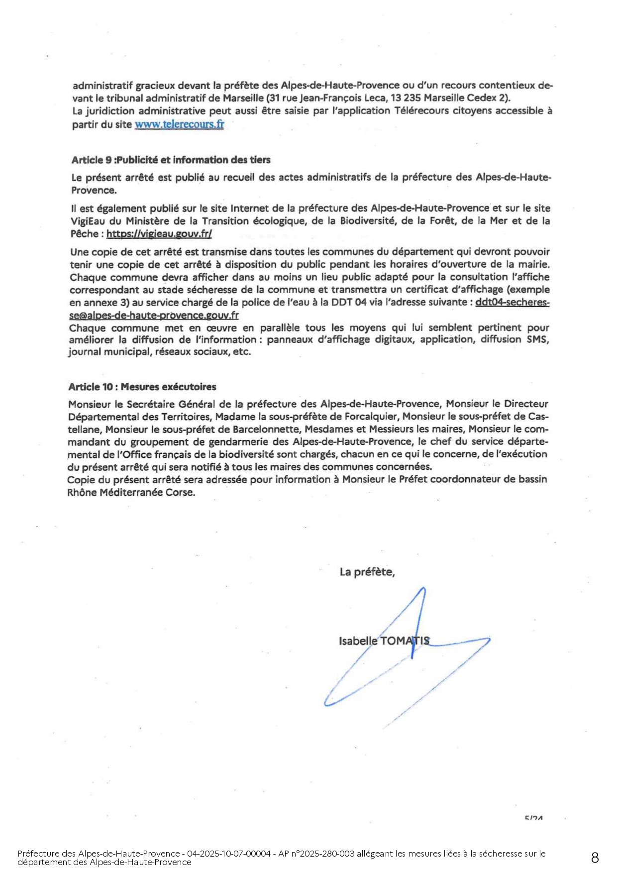 ARRÊTÉ PRÉFECTORAL ALLÉGEANT LES MESURES LIÉES A LA SÉCHERESSE SUR LE DEPARTEMENT DES ALPES DE HAUTE-PROVENCE
