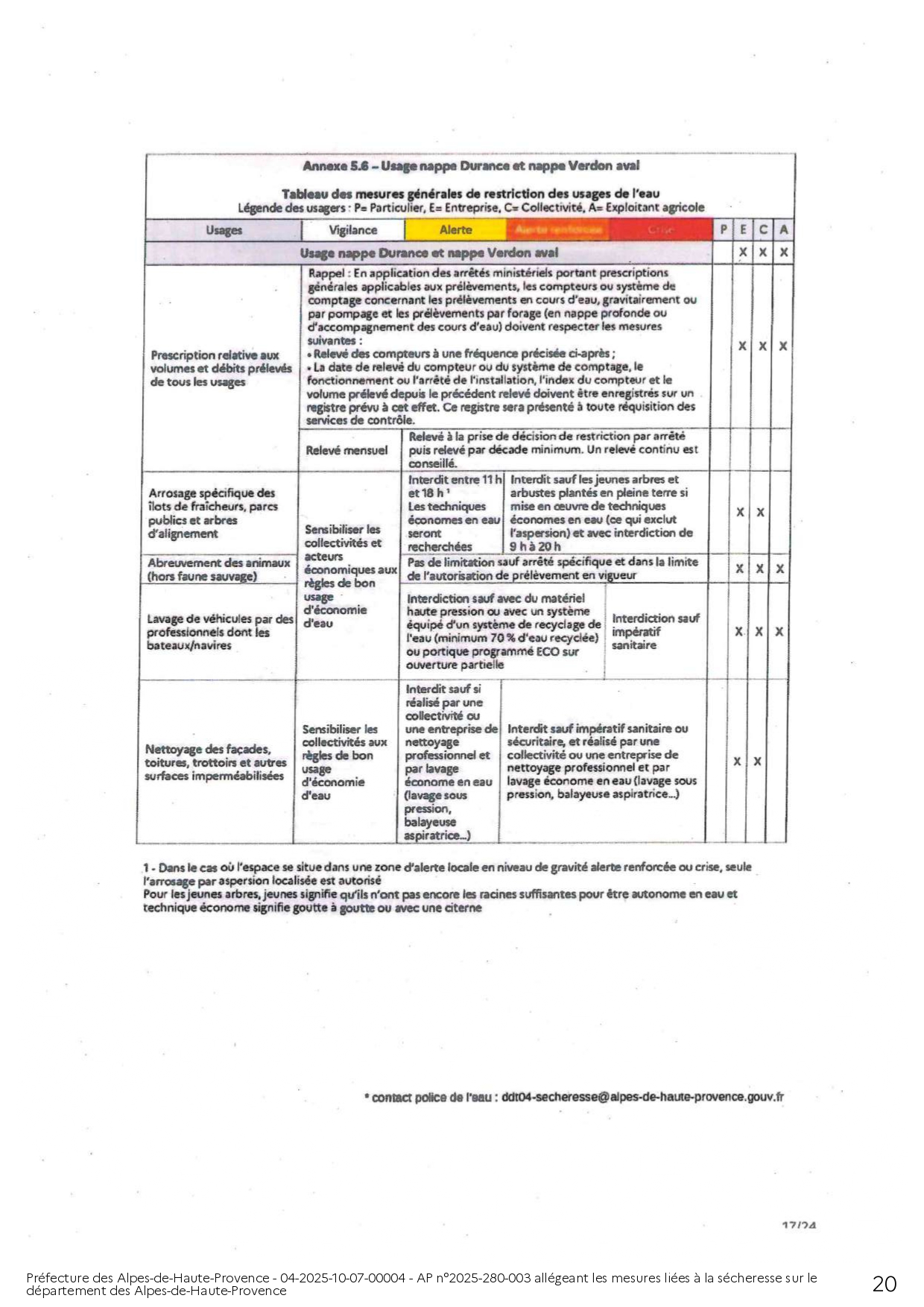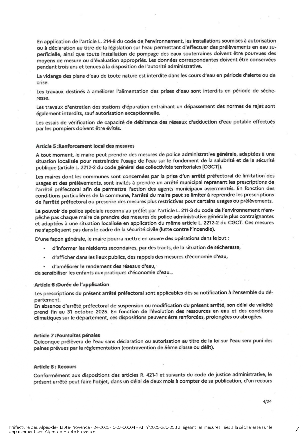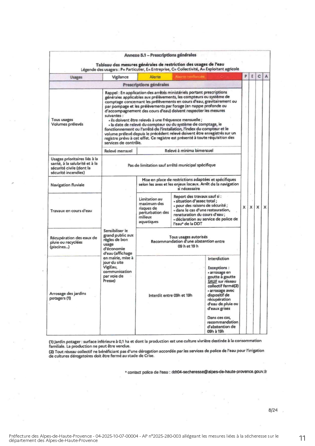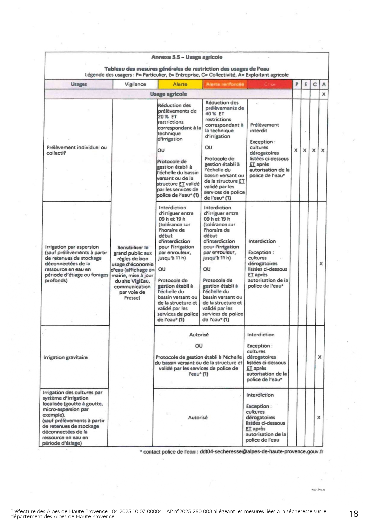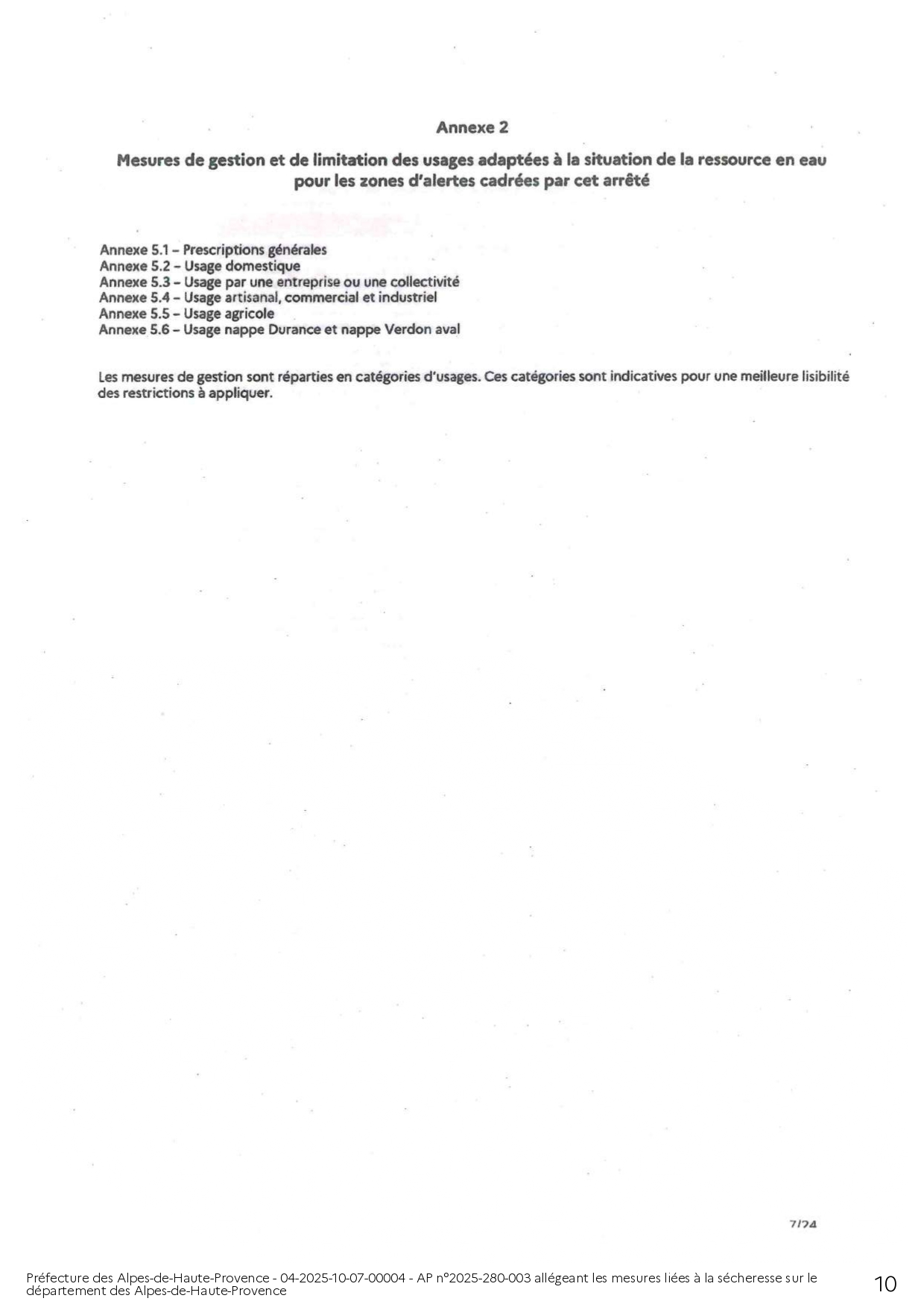 ARRÊTÉ PRÉFECTORAL ALLÉGEANT LES MESURES LIÉES A LA SÉCHERESSE SUR LE DEPARTEMENT DES ALPES DE HAUTE-PROVENCE