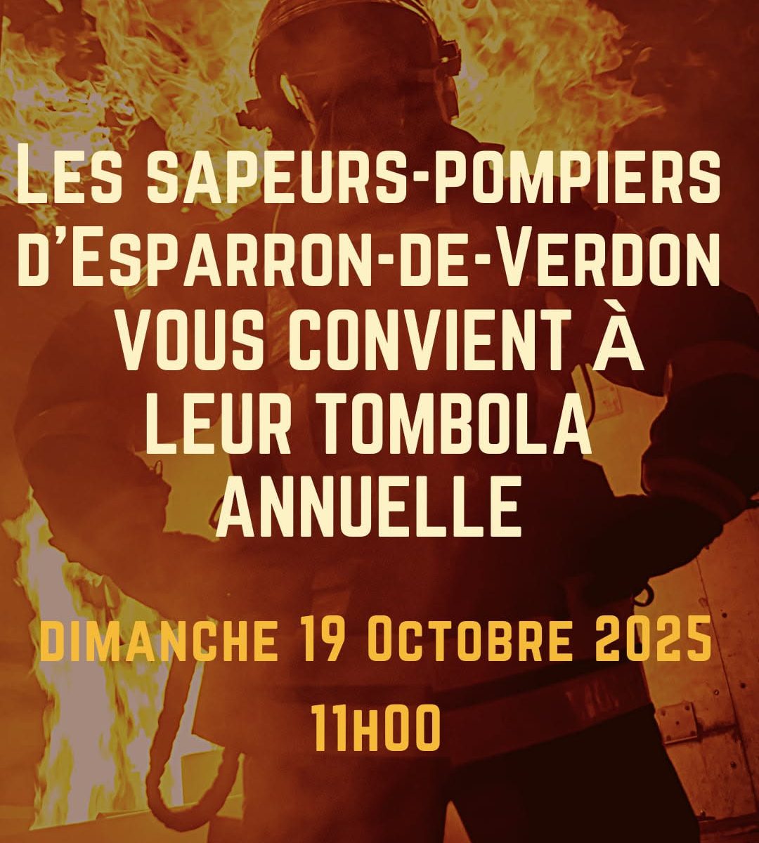 Les sapeurs-pompiers d’Esparon-de-Verdon ont le plaisir de vous convier à leur grande tombola !