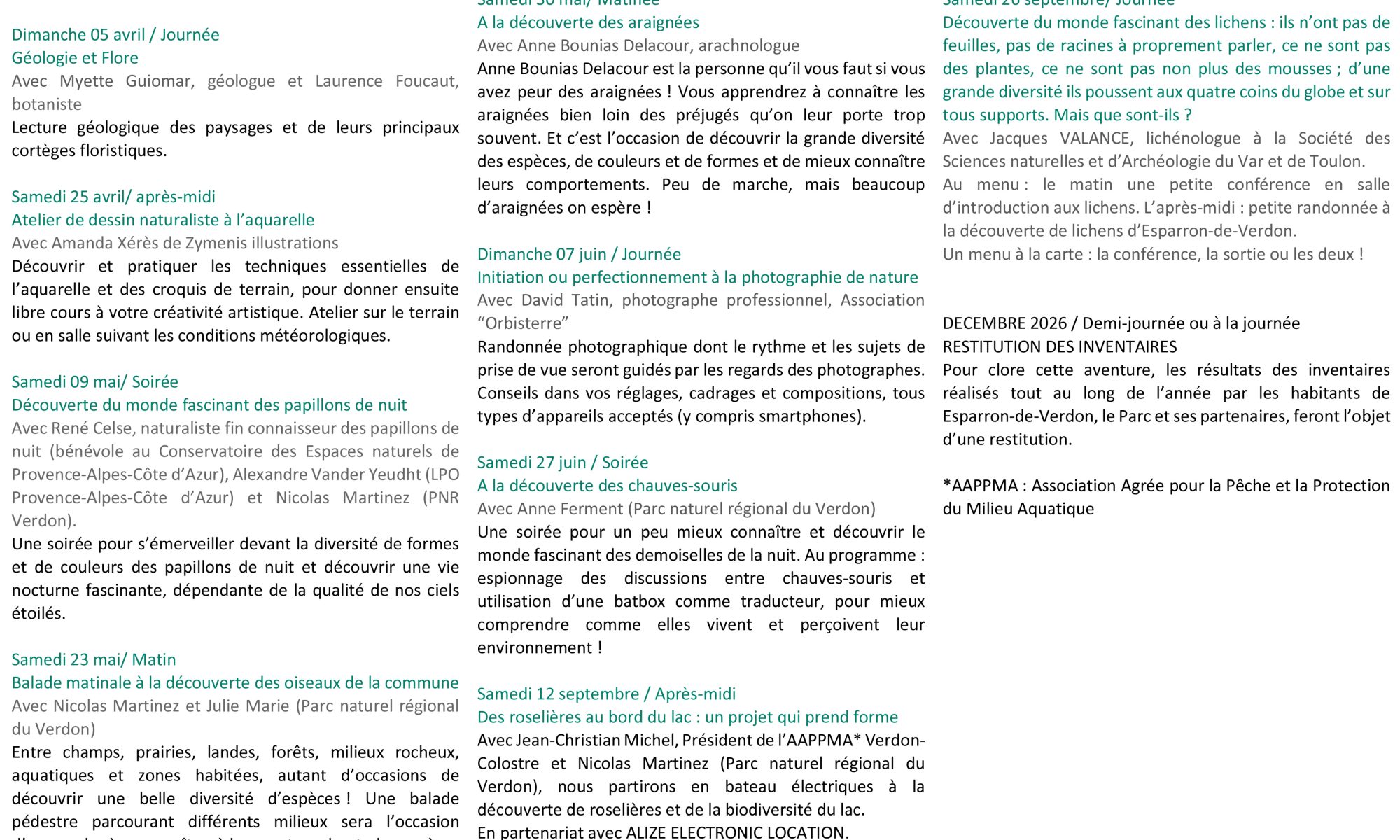 Informations détaillées et inscriptions obligatoires sur www.parcduverdon.fr/agenda