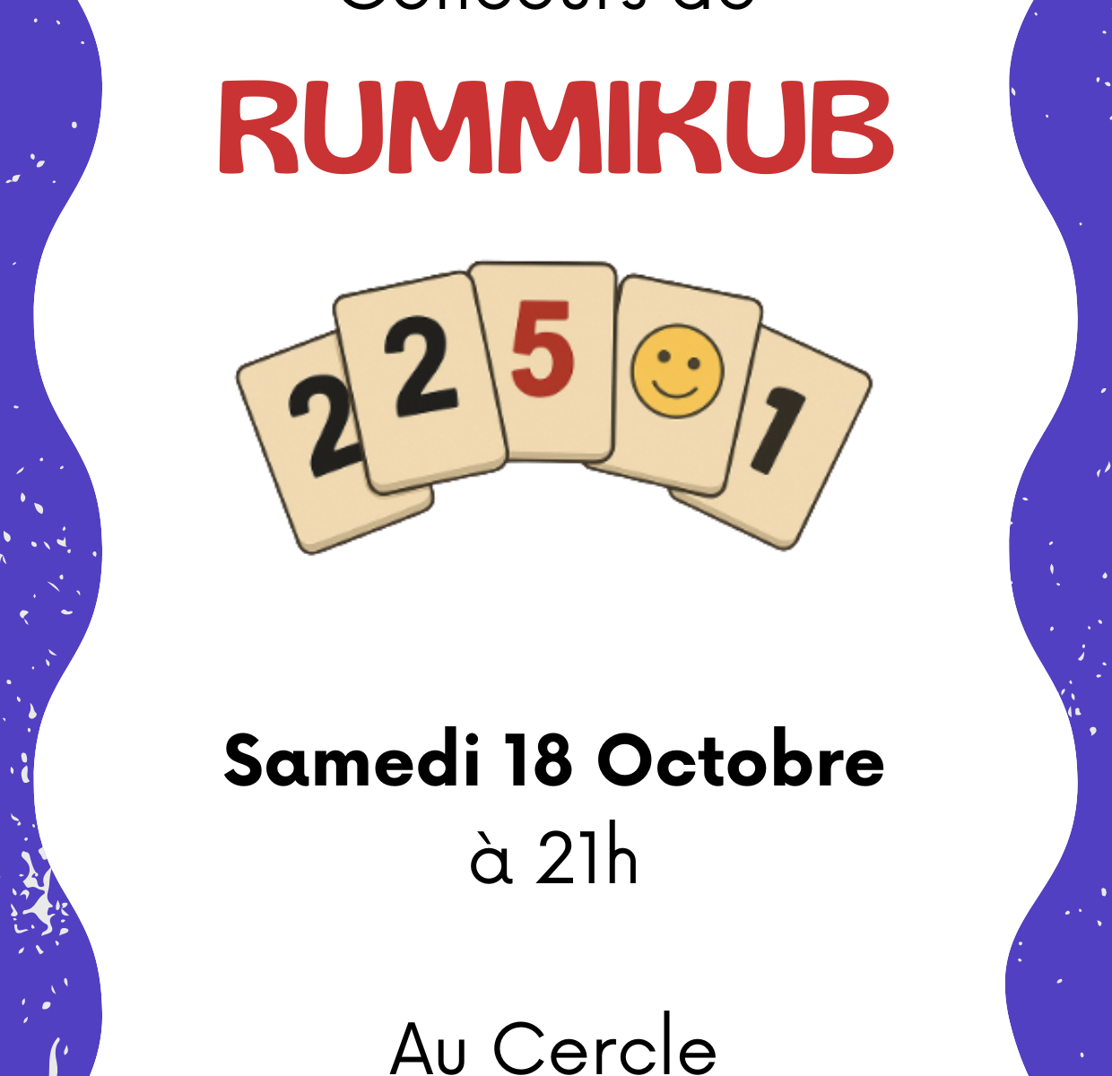 CONCOURS DE RUMMIKUB AU CERCLE LE SAMEDI 18 OCTOBRE 2025 A 21H00